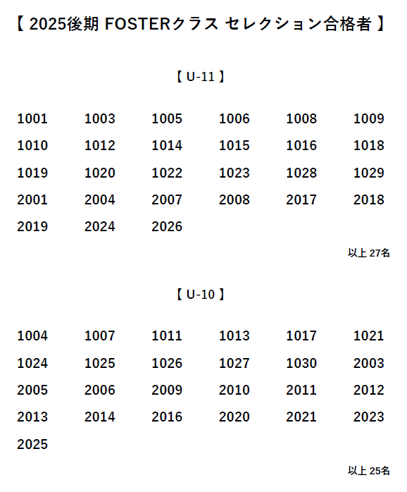 この度はジュニアスクール2025年度後期FOSTERクラスのセレクションにご参加いただき誠にありがとうございました