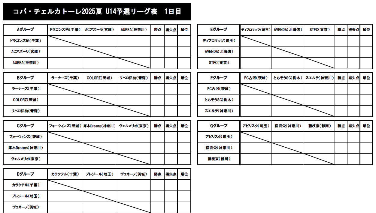 COPA・CERCATORE2025夏U14大会 組み合わせ